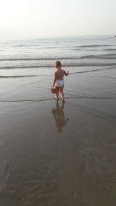Premiers pas seule vers les vagues, à la recherche de quelques crabes et coquillages.