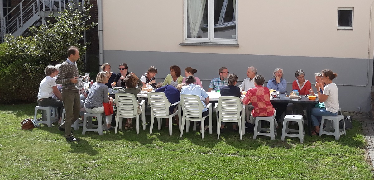 Dans la joie de nous retrouver aussi nombreux au Centre pastoral ce mardi (pour fêter saint Bernard !), nous avons déjeuné au soleil et, le croiriez-vous 🙂 ! passé un excellent moment à échanger des nouvelles, à découvrir les aventures estivales des uns et des autres.