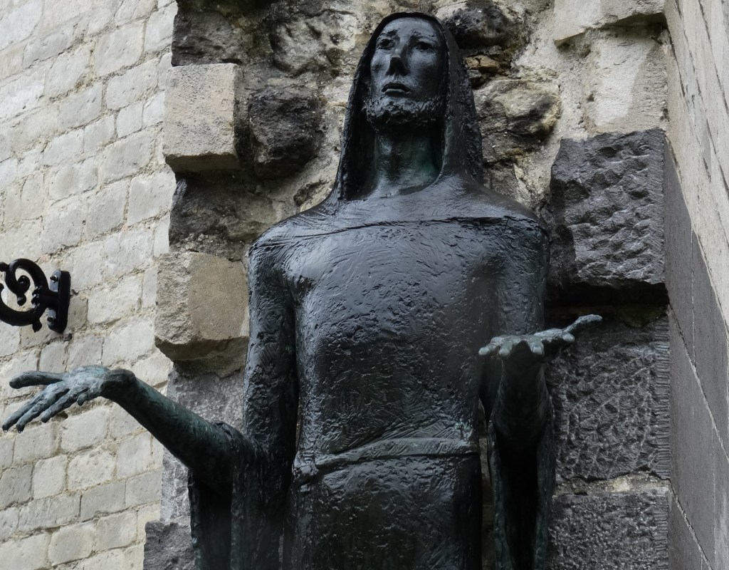 Mais qui est ce religieux qui nous invite à la pauvreté à l’entrée de cette église ? Le reconnaissez-vous ? Il s’agit de saint François d’Assise, vêtu d’une simple bure avec une corde à la ceinture. Sa présence rappelle celle des franciscains qui se sont installés dans ce couvent dès le début du XIIIème siècle, peu après le décès de François d’Assise.