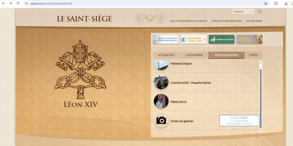 Dans la section News (pas Vatican News on a dit !) du site officiel de l’état du Vatican, sur la droite de l’écran, il suffit de cliquer sur l’événement de votre choix pour voir apparaître des photos et vidéos que nous pouvons utiliser.